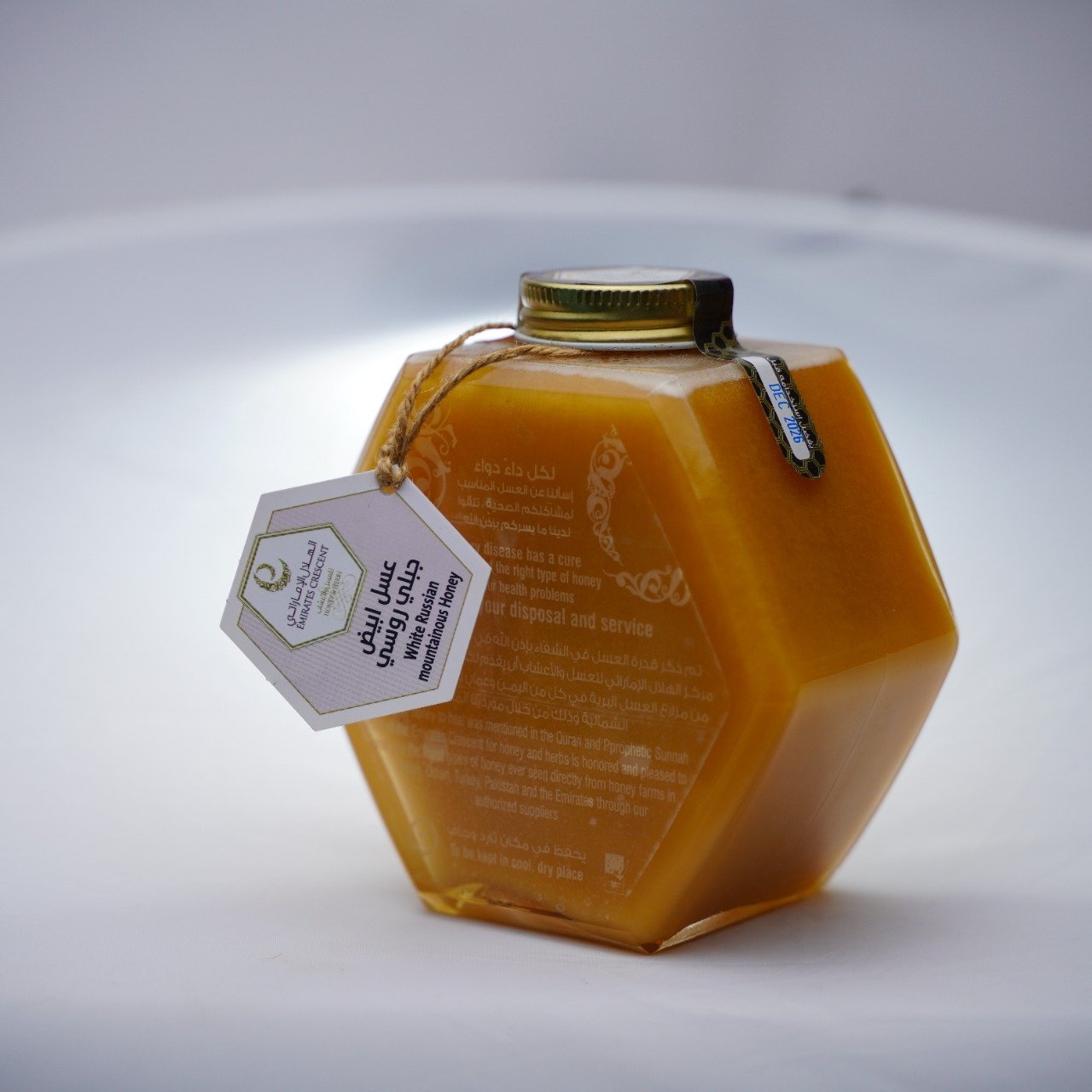 يتميز هذا العسل الابيض بقيمتة العلاجية الفائقه حيث يستخرجه النحل من اكثر من 70 نوع من الزهور والحشائش الجبلية البرية التي تنتشر في الجبال الروسية العالية في معظم شهور السنة والتي تكون في رؤوس الجبال الشاهقة وهو مفيد ومغذي للجسم كما يقوم بتقوية المناعه ومكافحة الأمراض