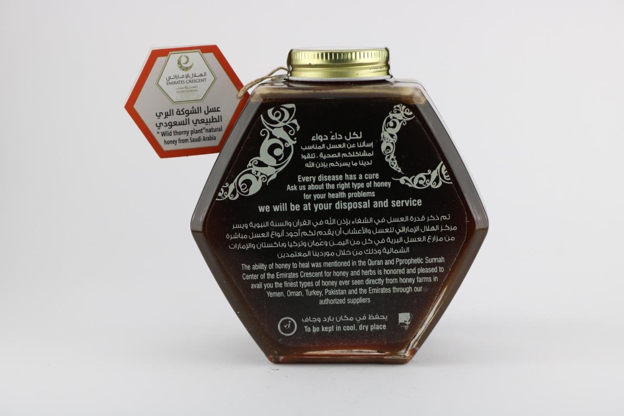 - هو عسل طبيعي لونه أحمر داكن، يقترب من اللون الأسود، وهو ذو طعم مميّز ولذيذ، ورائحته منعشة، يستخرج من الأشجار الشوكيّة البريّة التي تعيش في جوف الأودية خاصّةً في منطقة الجزيرة العربية، وهناك العديد من أنواع هذه الأشجار الشوكيّة تتعدّى 18 نوعاً ، وهذا العسل يحتوي على عناصر غذائيّة هامة؛ فهو غنيّ بالفيتامينات والمعادن والسكريّات البسيطة، ومضادّات الأكسدة التي تفيد الجسم في تحسين الصحّة العامة وعلاجه من العديد من الأمراض.